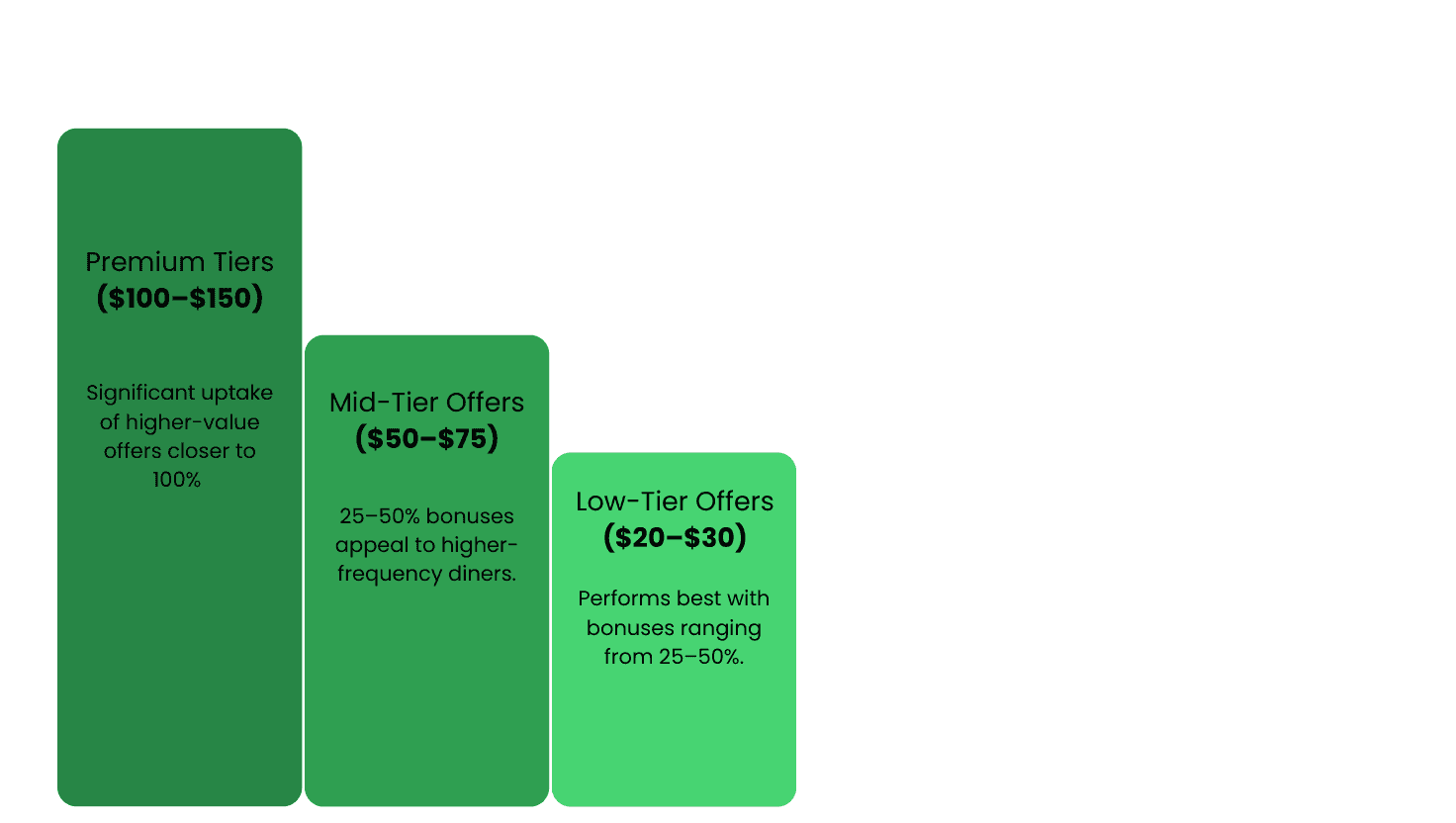 A tiered structure allows venues to match reward levels to different customer segments while maintaining margin control and measurable performance.