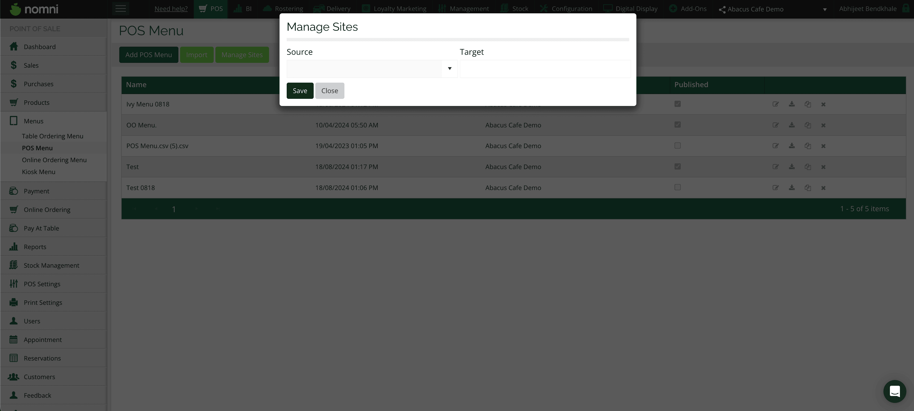 Simplified POS Menu Management
