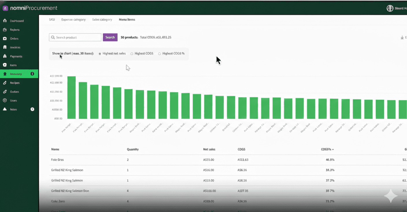 With Nomni's integrated platform—including Nomni Supply, Nomni POS, and Nomni Digital Ordering —item-level sales and cost data are connected, making analysis easier and more accurate.