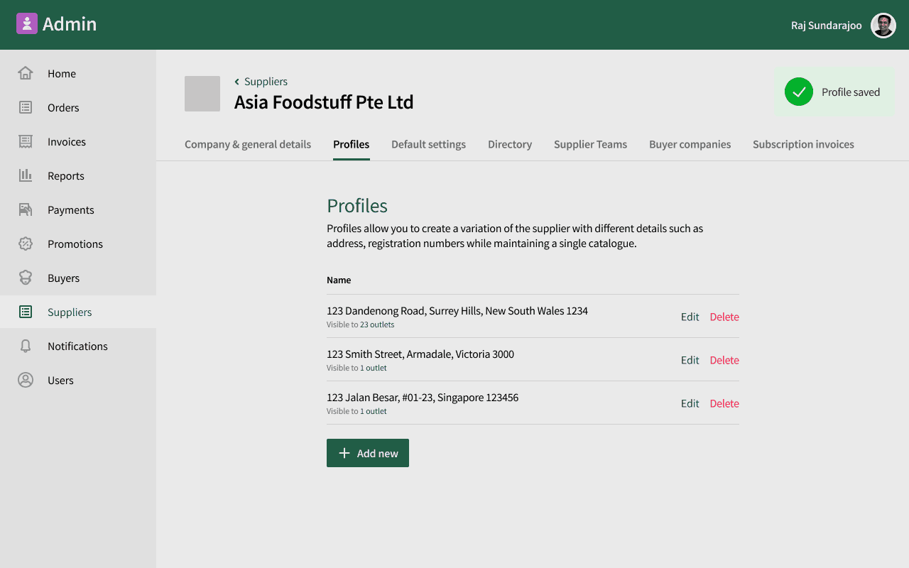 Multiple profiles for same supplier