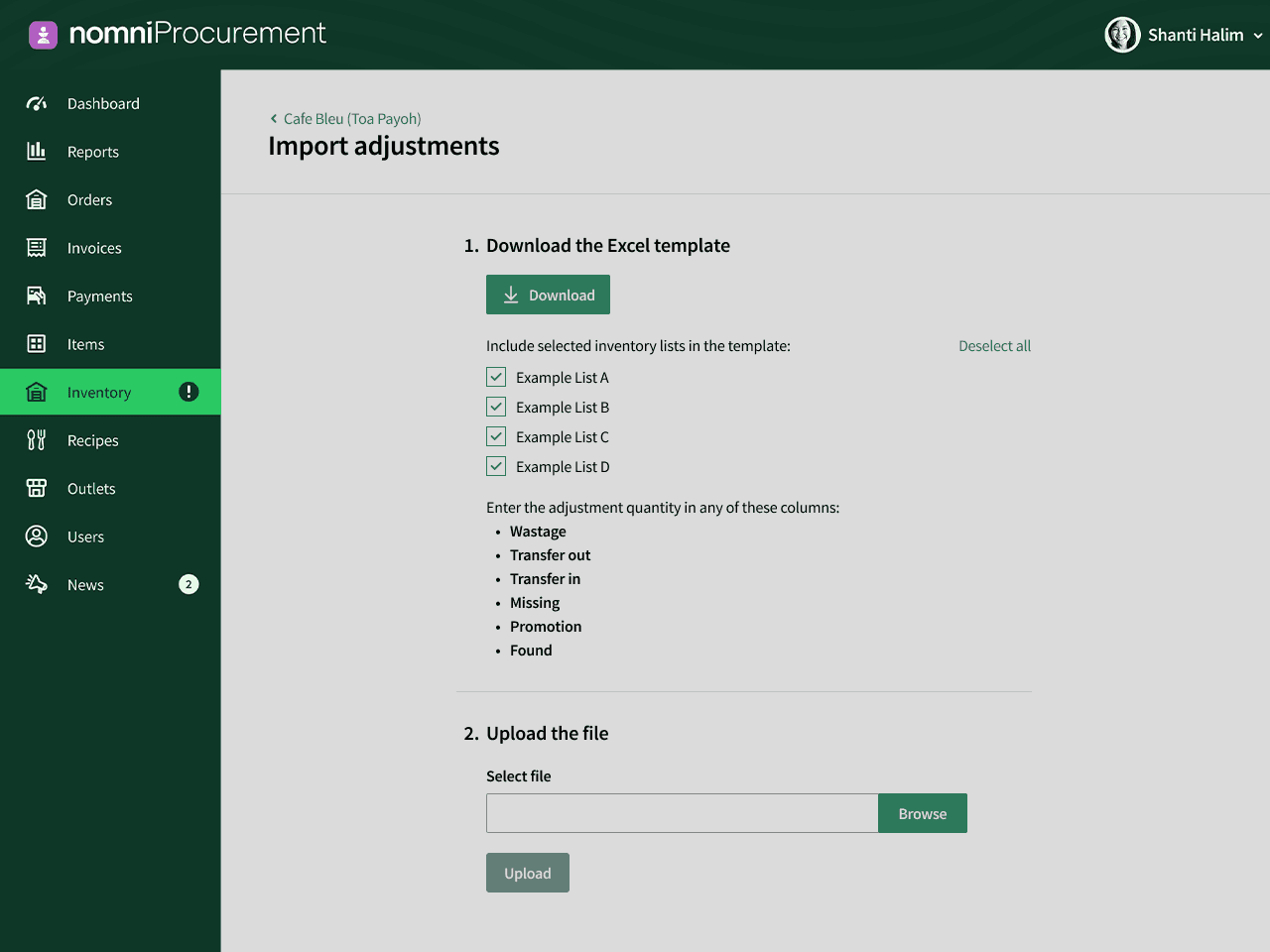 Multi-venue operators told us two things: “give HQ the wheel” and “let us update stock in one shot.” Done. Nomni Supply now gives head offices true central control across outlets, plus Excel imports for instant, venue-wide inventory adjustments and productions.